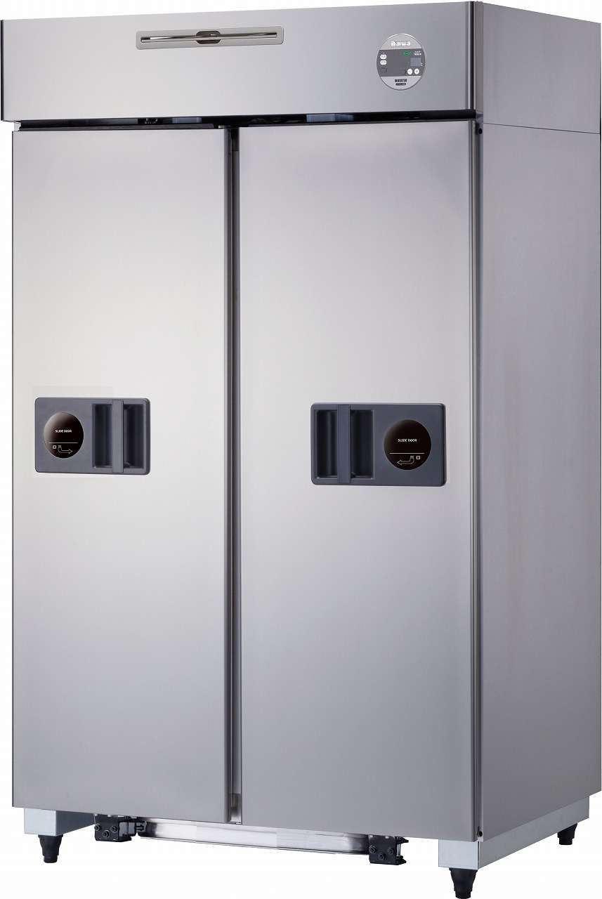 今まで諦めていた場所への設置が可能となり、バックヤードなどの狭いスペースを最大限有効活用できます。扉のレール部分にスマート開閉機構の採用で、扉開閉がスムーズとなり、作業性が向上しました。(代表機種)